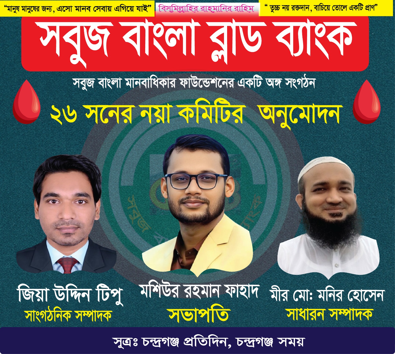 View Allসবুজ বাংলা ব্লাড ব্যাংকের নবগঠিত কার্যনির্বাহী কমিটিতে সভাপতি মশিউর,সম্পাদক মনির