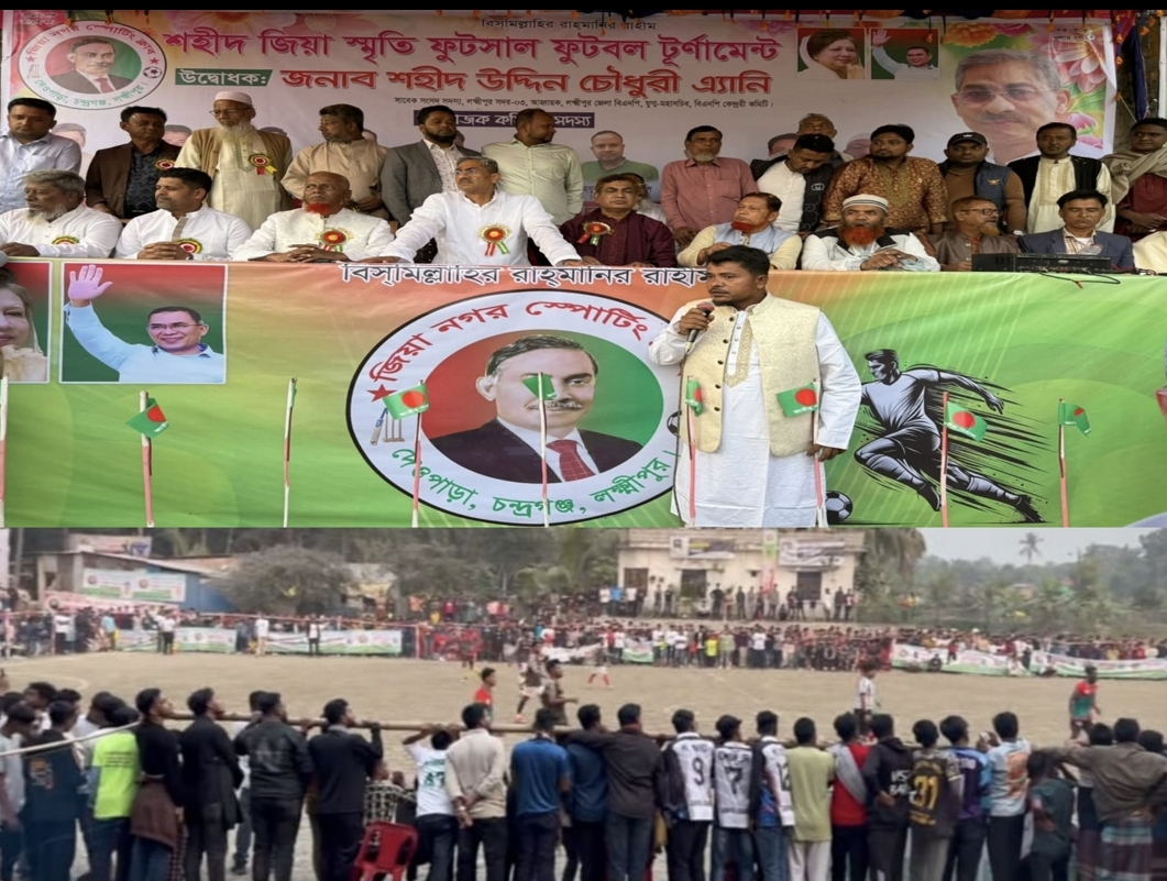 চন্দ্রগঞ্জে শহীদ জিয়া স্মৃতি ডাবল হুন্ডা ফুটসাল টুর্নামেন্টের ফাইনাল খেলা ও পুরস্কার বিতরণী ৬ ফেব্রুয়ারি বিকেল ৩টা
