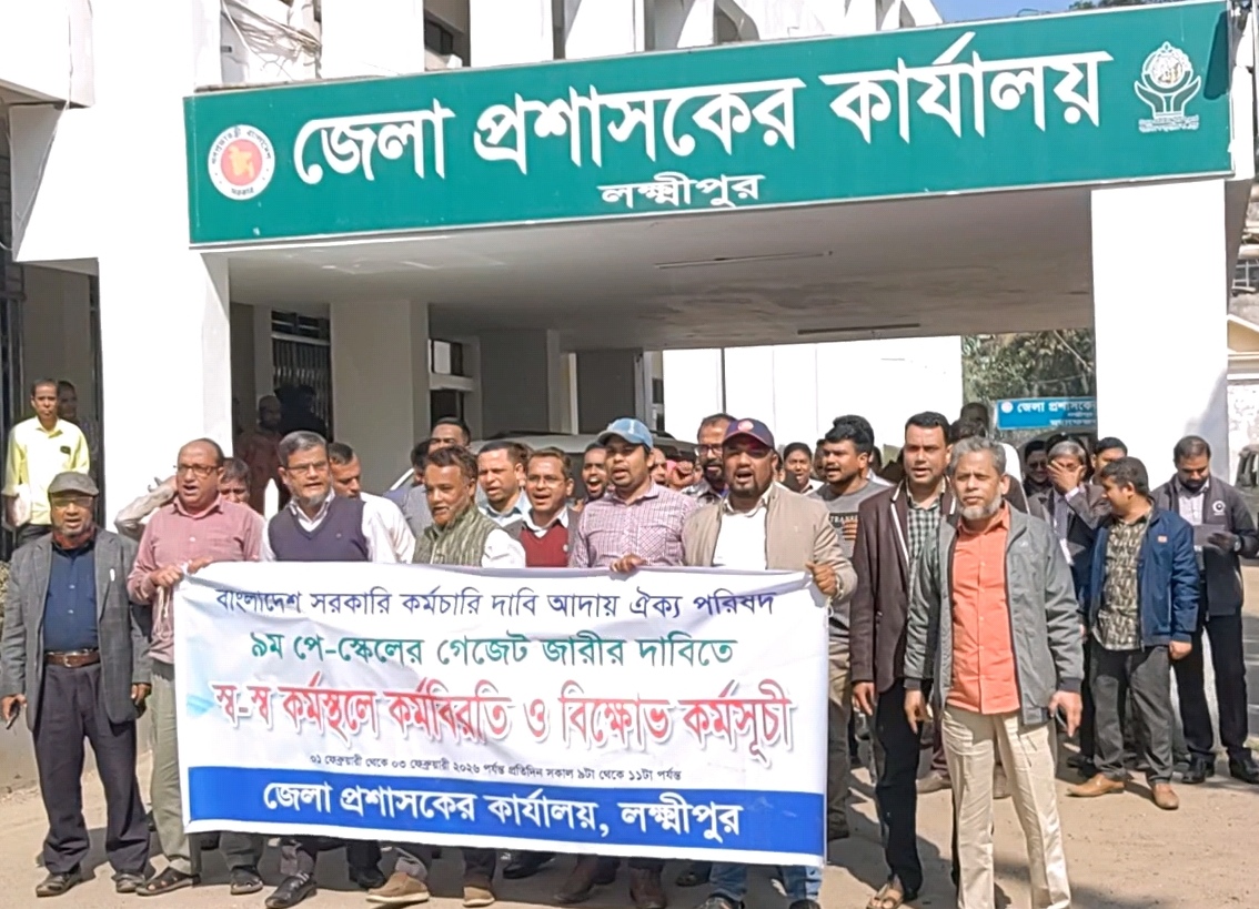 লক্ষ্মীপুরে নবম পে-স্কেলের দাবিতে সরকারি কর্মচারীদের কর্মবিরতি ও বিক্ষোভ