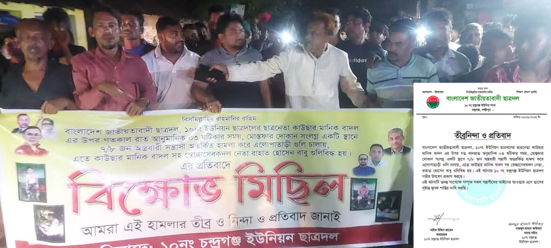 বাংলাদেশ জাতীয়তাবাদী দল (বিএনপি) ও ভারপ্রাপ্ত চেয়ারম্যান তারেক রহমানকে নিয়ে অপপ্রচার ও কুরুচিপূর্ণ মন্তব্যের প্রতিবাদে ১০ নং চন্দ্রগঞ্জ ইউনিয়ন বিএনপির বিক্ষোভ ও প্রতিবাদ মিছিল।